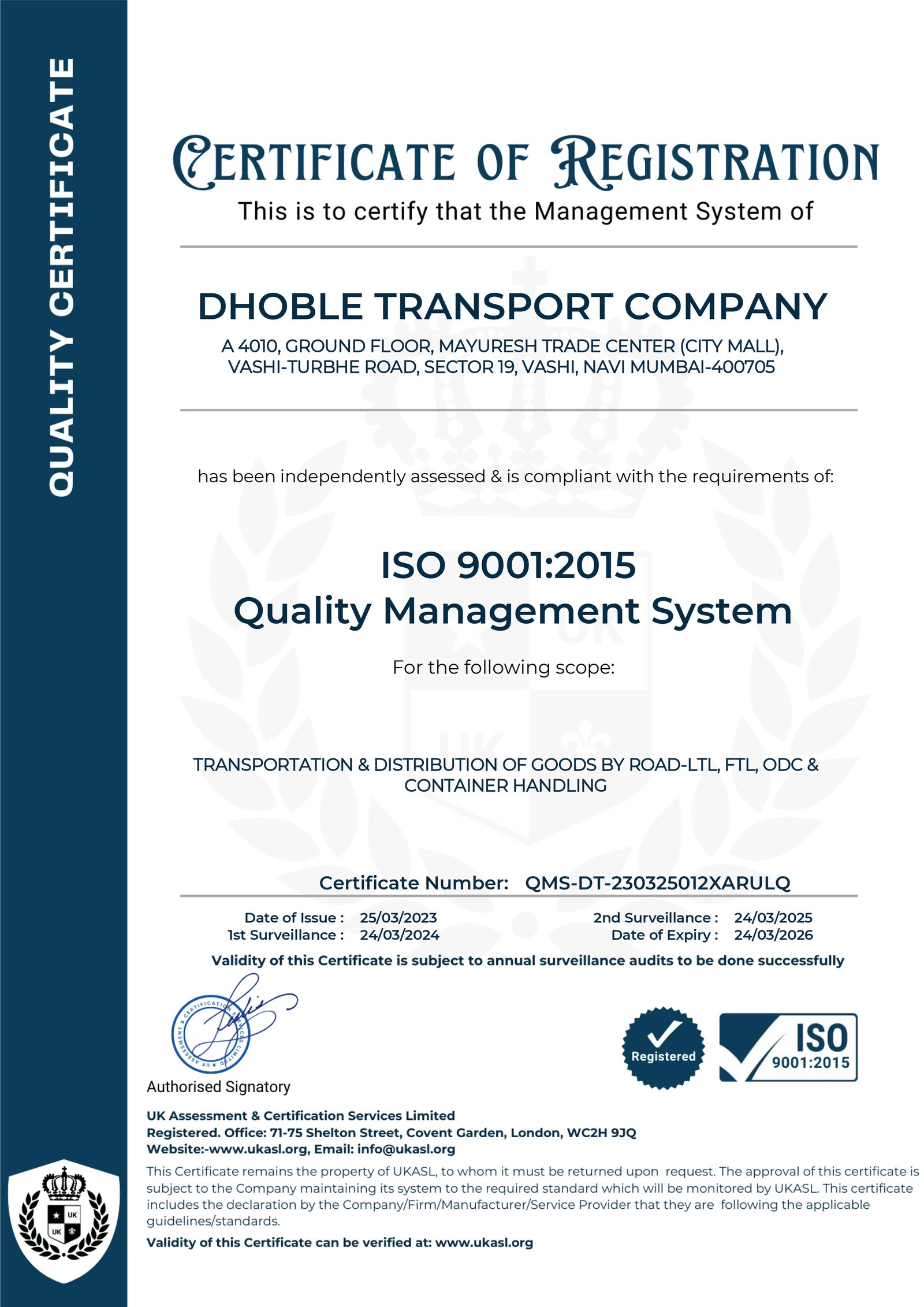 Dhoble Transport Company (DTC) is one of the leading goods transportation service providers for more than six decades; established by Late Shri Bhagwantrao Dhoble.